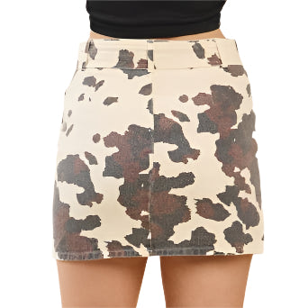 Go bold with a touch of country charm in this adorable cow print mini skirt! This playful skirt is the perfect statement piece for anyone who loves a little sass and a lot of style. Featuring a high-waisted fit and a fun cow print pattern, it's designed to be the star of your outfit. A built-in belt adds a chic finishing touch. Pair it with a simple black top and some boots for a festival-ready look, or with a cozy sweater for a unique everyday style. Get ready to turn heads in this must-have mini!