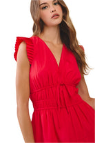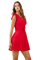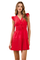 Feel the romance in our ravishing red mini dress! This little number is designed to turn heads with its vibrant hue and sweet details. Featuring charming flutter sleeves and a flattering V-neckline, it's the perfect blend of playful and chic. The subtle texture adds a touch of sophistication, while the mini length keeps it fun and flirty. Whether you're stepping out for a date night or want to add a pop of color to your wardrobe, this dress is your secret weapon for feeling confident and fabulous!