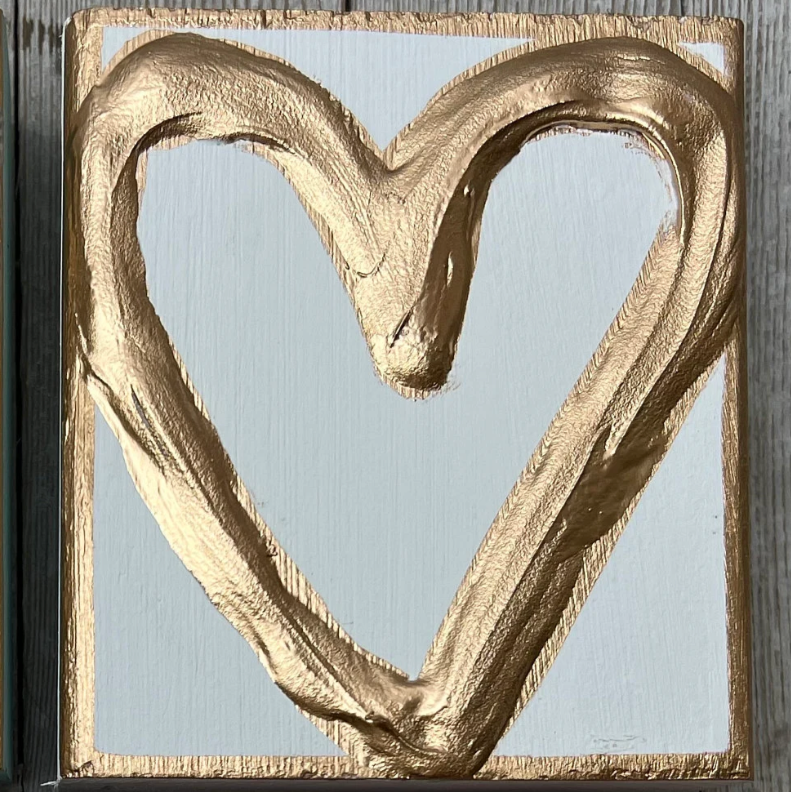 Add a touch of elegance to your dorm or apartment with this 4x4 Gold Heart. Adorned with a hand painted gold heart, serves as a year-round reminder of love and serenity. This piece, suitable for any occasion, seamlessly blends into your decor, enhancing the aesthetics of your space.