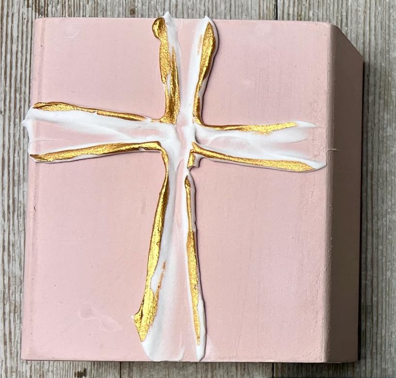 Add a touch of elegance to your dorm or apartment with our 4x4 White Cross Art. This hand painted white cross with gold accents, serves as a year-round reminder of faith and serenity. This piece, suitable for any occasion, seamlessly blends into your decor, enhancing the aesthetics of your space.