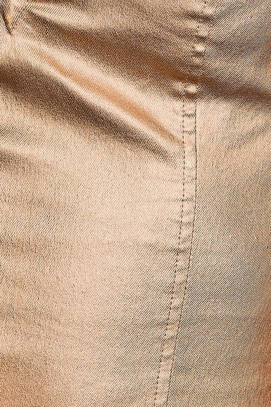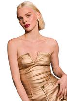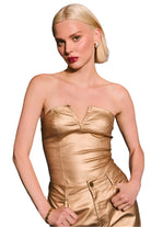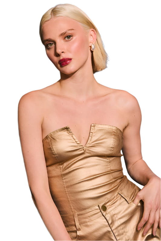 Steal the spotlight in this stunning gold strapless bodysuit that radiates confidence and glam. Designed with a structured fit and satin-like finish, this piece offers just the right amount of stretch and support. Perfect for a night out, special event, or when you just want to feel like that girl.