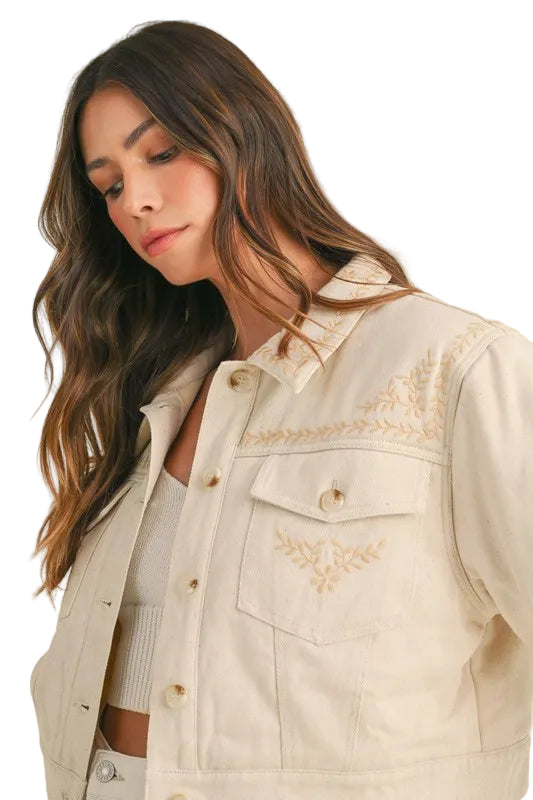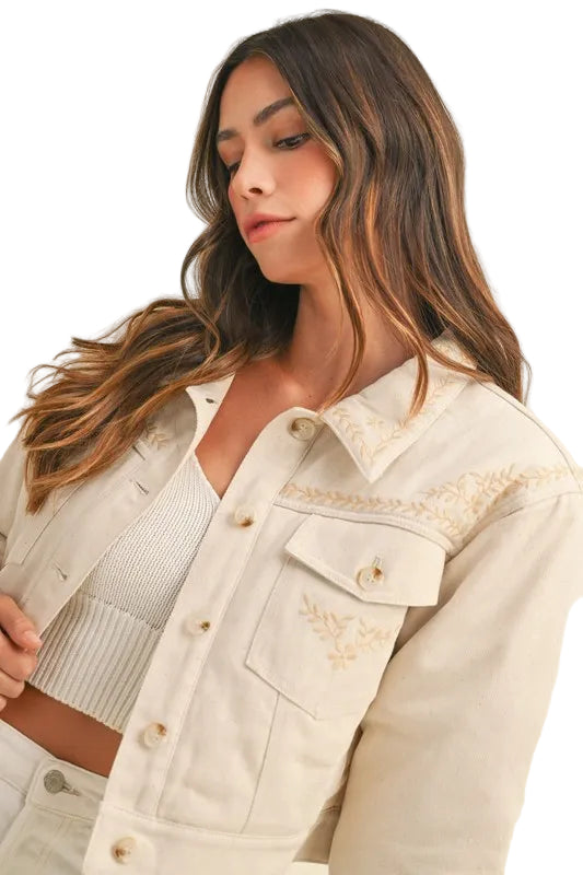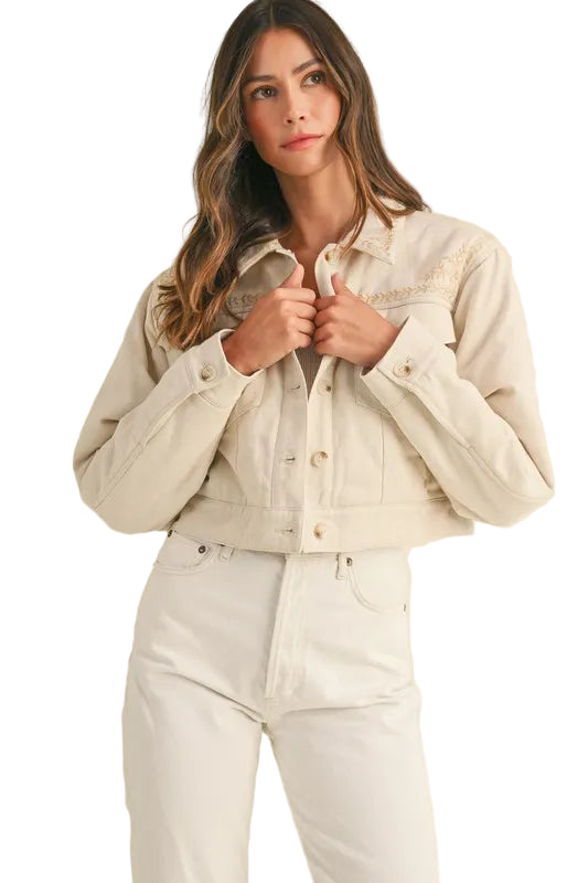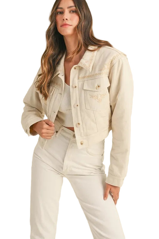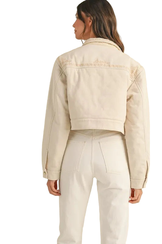 The Embroidered Quilted Cropped Jacket is a unique and stylish outerwear piece featuring intricate embroidery and a quilted texture. This jacket combines a cropped silhouette for a modern look with eye-catching embroidery for added detail and charm. The quilted design adds depth and texture, making it a fashionable and versatile option for layering over outfits to create a chic and trendy ensemble.