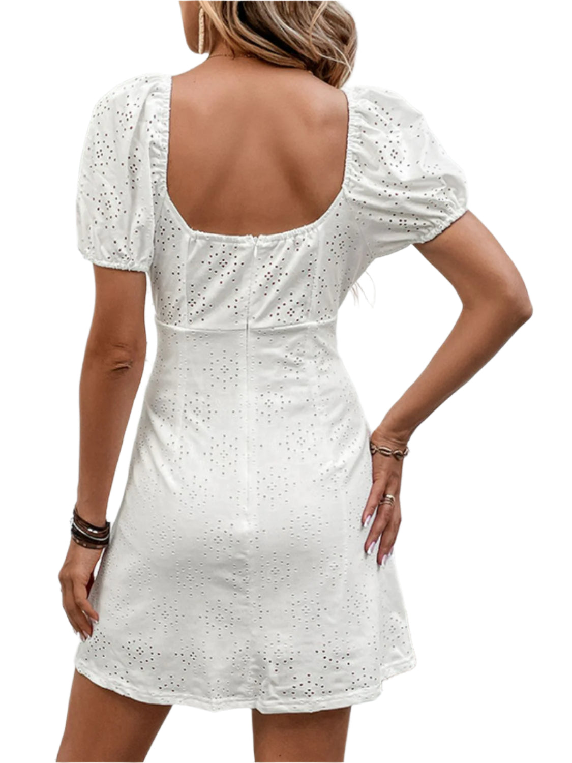 Step into a fairytale with our 'Cottagecore Cutie' mini dress! This dreamy white dress is pure romance, featuring a stunning statement bow at the neckline and sweet puff sleeves with delicate elasticated cuffs. The flattering V-neck and playful flared skirt create a whimsical silhouette that's perfect for sunny days and garden strolls. It's the ultimate dress for picnics, charming dates, or simply feeling like the main character in your own story. Get ready to fall in love with your new favorite dress!