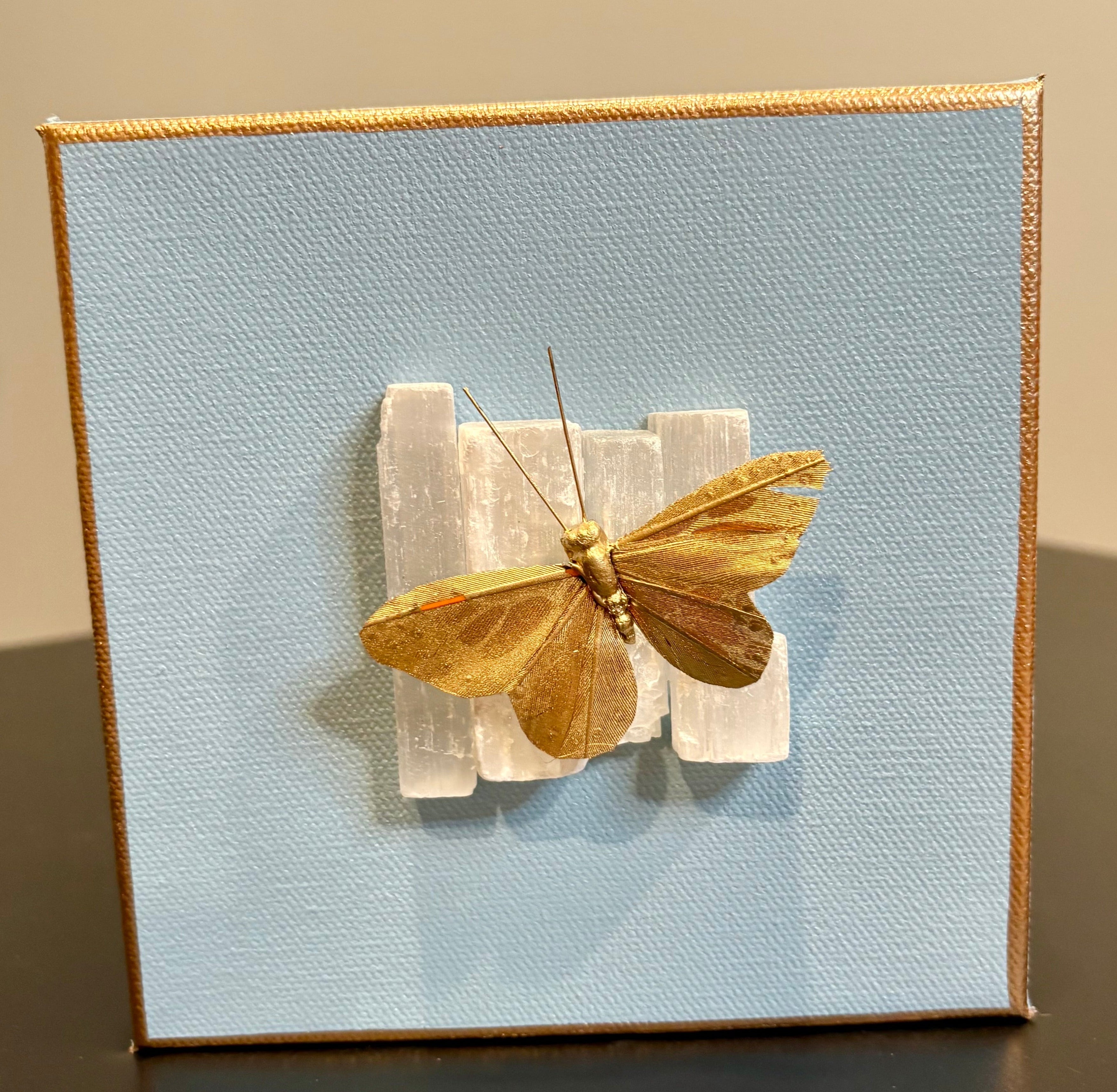 Add a touch of elegance to your dorm or apartment with our Butterfly Crystal Art. These gallery wrapped canvases come in 6"x6" with crystals and gold butterfly. They make the perfect addition to any wall, or shelf! This piece, suitable for any occasion, seamlessly blends into your decor, enhancing the aesthetics of your space.