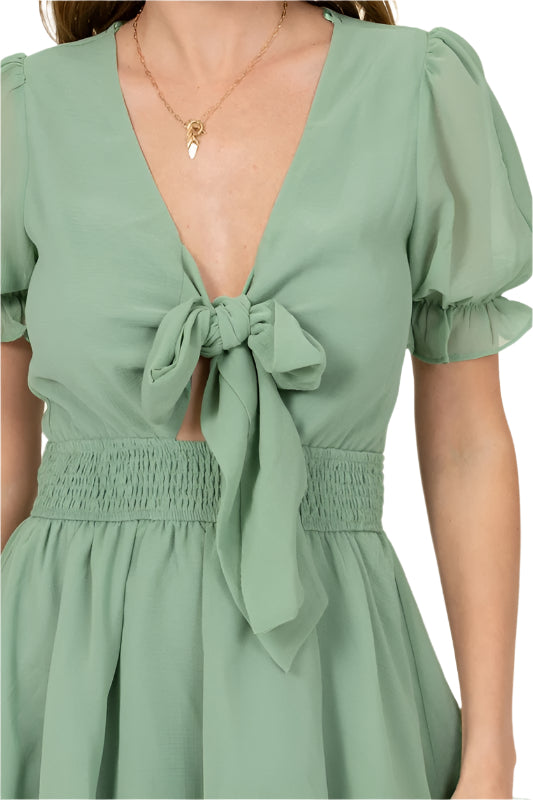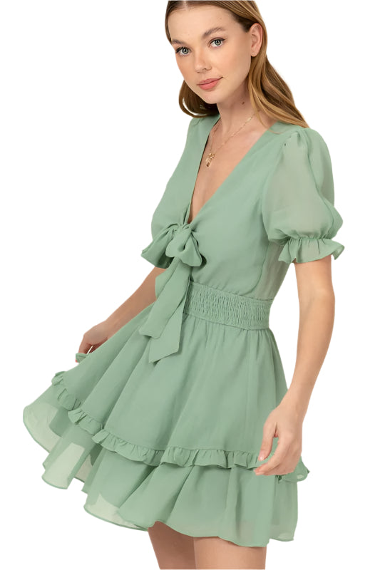 Sweet, flirty, and effortlessly feminine — our Gemstone Glow Dress is the ultimate statement piece for sunny days and fun nights. Featuring a flattering V-neckline with an adjustable front tie, playful puff sleeves, and a flowy tiered skirt, this dress brings movement and charm to every step. The non-sheer fabric and comfortable fit make it perfect for brunch dates, garden parties, or summer getaways.