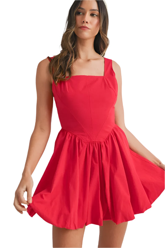 Turn up the charm in our Cherry Bomb Mini Dress! This playful and feminine piece features a flattering square neckline, and a bubble skirt that moves with every step. The soft, lightweight fabric makes it perfect for sunny days, date nights, game days or any moment you want to feel effortlessly cute. Its bold red hue is a total showstopper.
